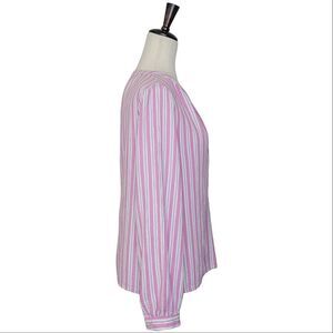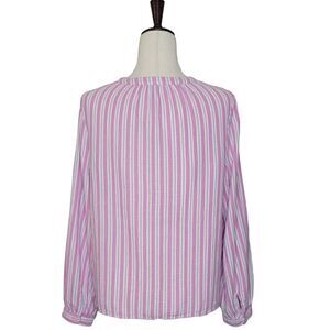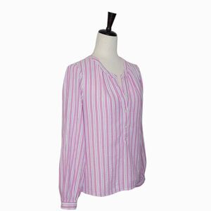 Universal Thread Pink Striped Split Button Neck Long Sleeve Gause Blouse Size S