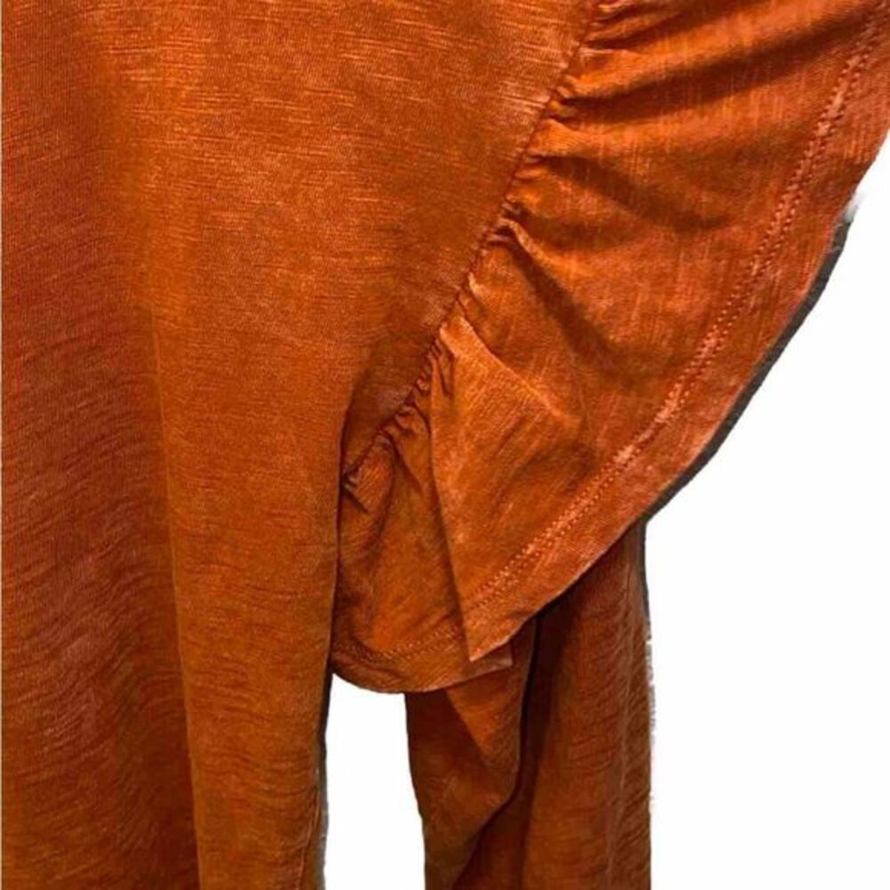Like new Universal Thread Top with ruffles on the arm. More of a rust color than orange