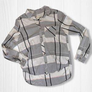 Universal Thread Tops Button Down White and Gray Plaid Women's Small