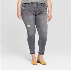 Distressed jeans, released hem, frayed hem, dip dyed hem, light fading, skinny jeans, colored jeans, colored denim, light gray jeans