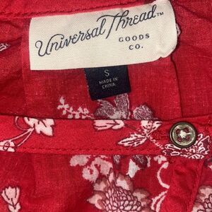 Cute red top with white/pink floral print from Universal Thread! Cute unique neckline with cutout v with a button. Adorable with jeans or shorts! Worn once. In new like condition. No stains or flaws
