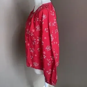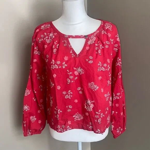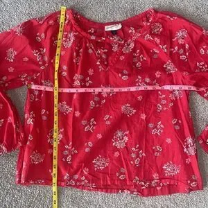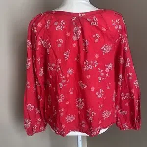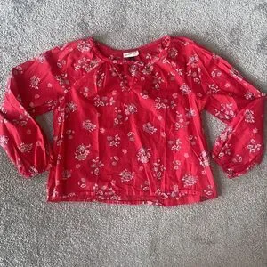 Cute red top with white/pink floral print from Universal Thread! Cute unique neckline with cutout v with a button. Adorable with jeans or shorts! Worn once. In new like condition. No stains or flaws