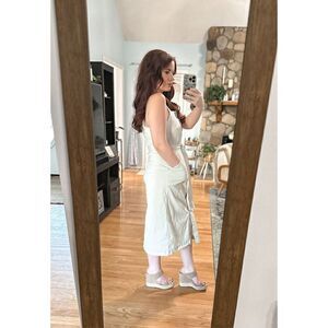 Universal thread trench dress || midi length || size medium but fits a little snug || good condition with some signs of wear (fading in small areas) || ties at waist || thick straps, could be worn in winter with a long sleeve tshirt as well ||