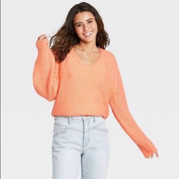 Universal Thread V Neck Balloon Sleeve Coral Knit Sweater