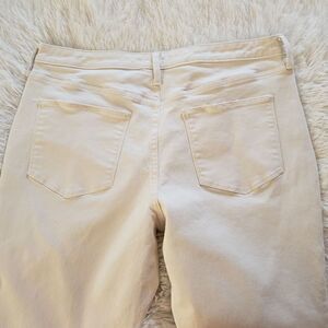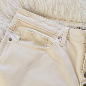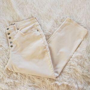EUC women's button front, high rise, cropped straight white jeans