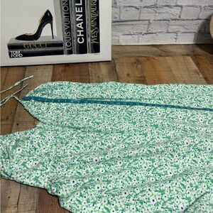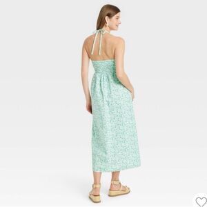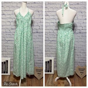 Universal thread green floral keyhole or cross front smocked midi sundress