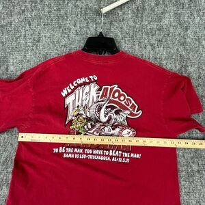 Show your Alabama pride with this Men's Extra Large Red University of Alabama Shirt. Featuring the "Tusk-Aloosa" graphic from the 2011 season, this shirt highlights the iconic rivalry with LSU. Ideal for any Bama fan, it offers comfort and team spirit for game days or casual wear.