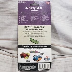 Challenge your mind and have fun with the University Games 20 Questions Brain Teasers Game. This family game is perfect for 2 or more players and features cards with various mystery, mind, and logic puzzles. The game includes cards with brain teasers from different themes and will keep you entertained for hours.