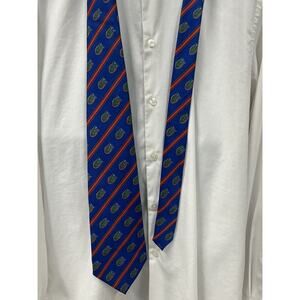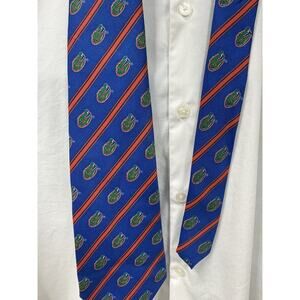 This product is a silk neck tie featuring the University of Florida Gators logo, making it a perfect gift for a dad who is a college alumni and fan of the team. The tie is in blue color and one size fits all. It is officially licensed fan apparel for football enthusiasts, specifically for fans of the Florida Gators team. Made from high-quality silk material, this neck tie is a stylish way for fans to show their support for their alma mater.