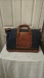 University Of Penn Navy Blue and Brown Canvas and Leather Duffle Bag