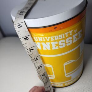 Show your love for the University of Tennessee Volunteers with this officially licensed 8" tin popcorn container. Featuring the iconic Big Orange Country design, this unisex adult item is perfect for any football fan. The tin is made in the USA and features the team's colors of orange and white.
