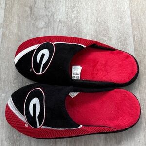 Like new men’s black,red&white Georgia Bulldogs men’s plush slide slippers with grip soles. Polyester upper, polyurethane foam soles. No snags, stains, fading or holes EUC size L- 11-12