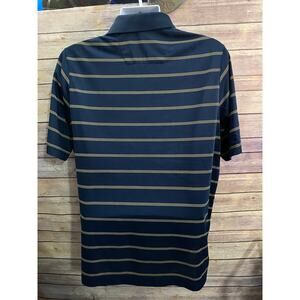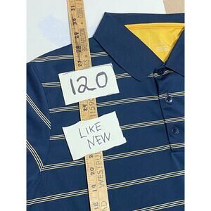 University of Michigan Polo Shirt Size Large Navy Yellow Stripe Antigua Performance Golf Style
