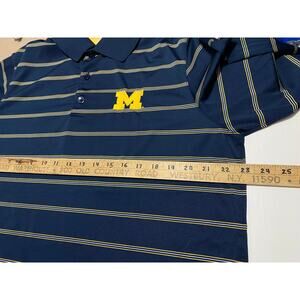 University of Michigan Polo Shirt Large Navy Yellow Stripe Antigua Performance