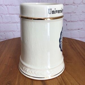 University of New Hampshire Ceramic Stein. Made in USA. This is a beautiful stein depicting the University of New Hampshire insignia with a nice gold gilt. There is a good amount of crazing around the stein bringing much character.