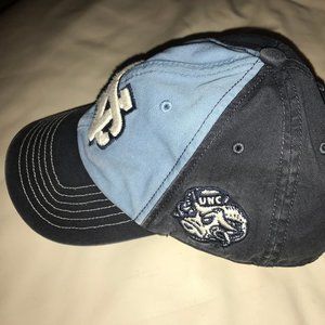 Navy blue and light blue, size men's small hat. Only worn a few times.