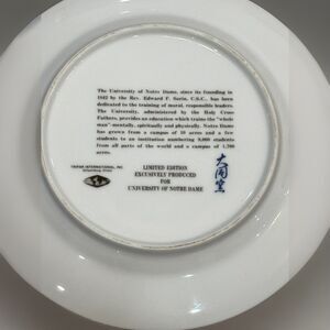 This University of Notre Dame Golden Dome Limited Edition Collectors Ceramic Plate is a must-have for any collector or fan of the iconic Irish university. The round, white plate features a beautifully detailed design of the school's historic Golden Dome and is perfect for displaying on any occasion.