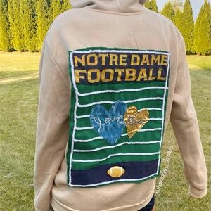 Notre Dame Football field “Love Thee” golden helmet pastel yellow hoodie, size medium. hand sewn by yours truly! brand new, never worn. I absolutely loveeeeee this piece! all edges have been sealed with fabric medium to prevent fraying 💛