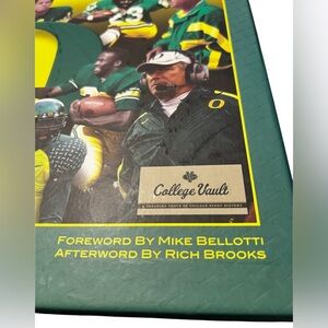 This detailed "scrapbook" contains never-before-published photographs, artwork and memorabilia drawn from Oregons athletic department and campus archives. Tucked into dozens of sleeves and pockets, fans will find reproductions of old game programs, historic tickets, numerous postcards and photos.