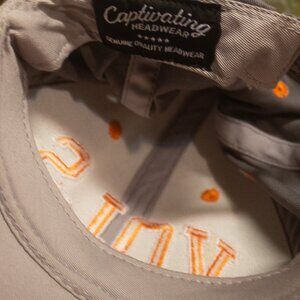 Although not of the same make this hat and t-shirt combo is almost identical in color. The tee made by Hanes is a long sleeve Tee size large. This is a 100% preshrunk cotton tee. This is a beefy shirt so size may be running a little large. The shirt measures about 21 inches from pit to pit and about 27 inches back of neck to bottom. The hat is made by Captivating Headwear and is a one size fits all with a loop and hook adjustable back. There is an image of "Smoky" on the end of the adjustment on the back. Show your blood runs orange with this combo at the next UT sporting event.