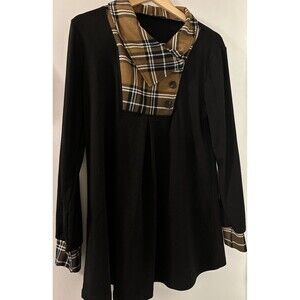 The Unixseque Women's long sleeve jacket is a stylish and versatile piece perfect for casual occasions. Made from a blend of polyester and cotton, this tunic sweater features a plaid pattern, mock neck, and button accents for added flair. With a regular fit and pullover style, this black jacket is machine washable and suitable for all seasons, making it a great addition to any woman's wardrobe. Made in China by the brand Unixseque, this jacket/tunic is a must-have for those looking for a comfortable and fashionable top. Length 31 Arm to armpits 25 Arm to armpits 18. Cotton-polyester blend. Great plaid scheme. Thank you for looking!
