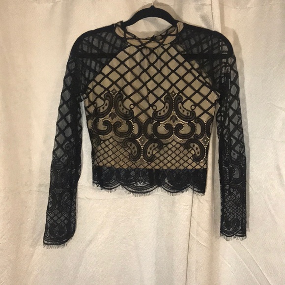 A laced dressy top with a silky inner shirt.