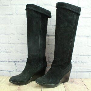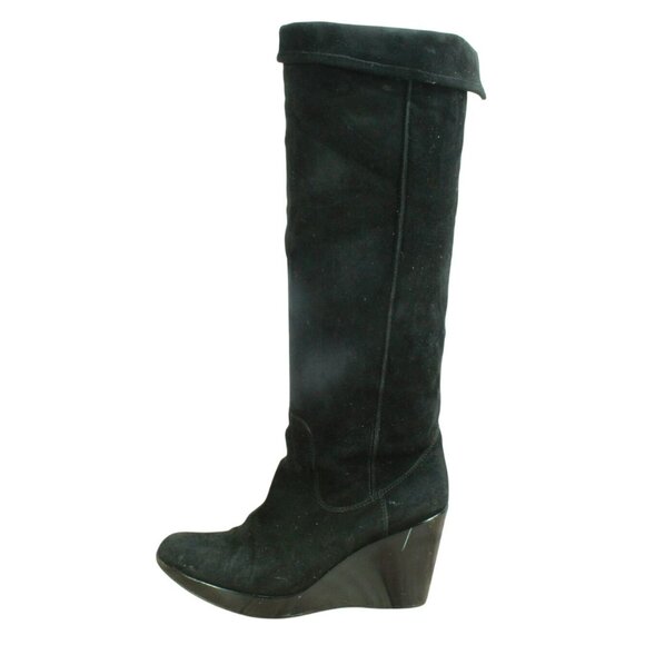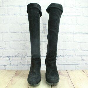 *Unknown Black Suede Wedge Over The Knee Pull On Western Boots Size 9 M