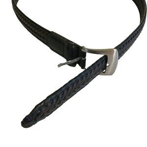 Unknown Brand Men's Genuine Leather Woven Belt EB0069 Sz 38 Black Brushed Nickel