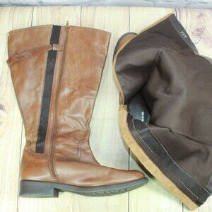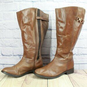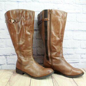 *Unknown Brown Leather Back Zip Knee High Riding Boots Size 11EEE