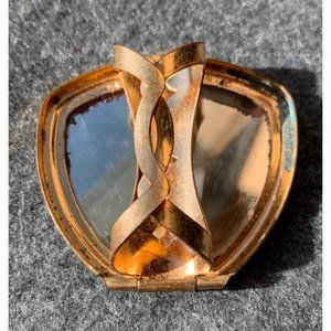 Gold Tone Metal incised decoration on this purse size mirror and lipstick holder