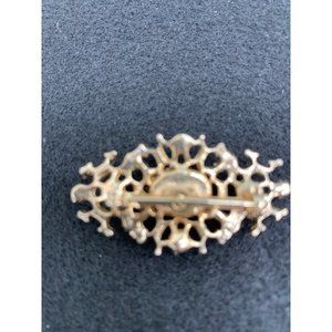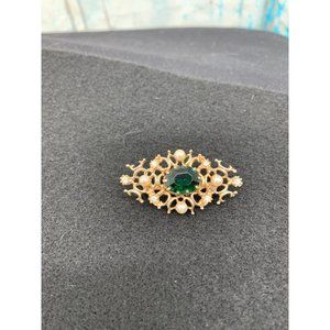 Unknown Maker Vintage Brooch OS Gold, Green, Cream Glass Stone, Faux Pearls i