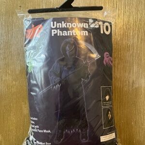 Transform into a mysterious figure with the Unknown Phantom Kids Costume. This black ensemble includes a robe and hood, perfect for a spooky night of fun.