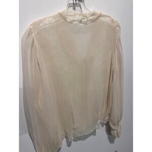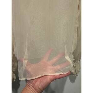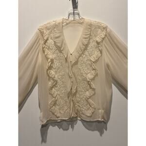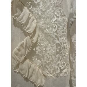 Unlabeled Vintage Cream Chiffon Lace Ruffle Blouse with Double Cuffs medium