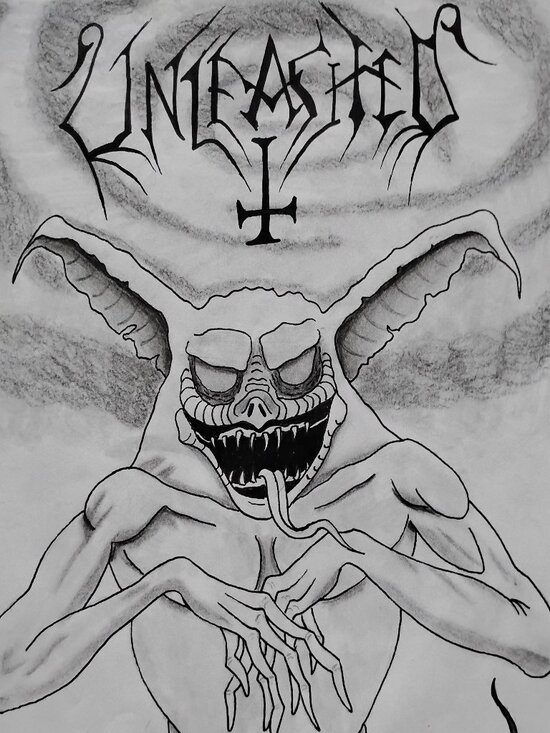 An ink and shaded drawing of a creature with the word Unleashed.
