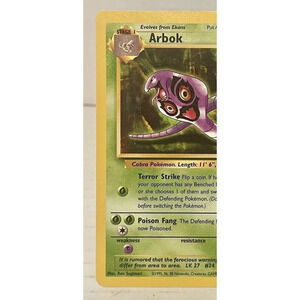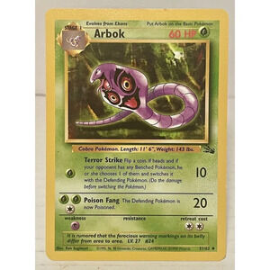 This Unlimited Fossil Arbok 31/62 Pokemon Card is a must-have for any Pokemon TCG collector. With its uncommon rarity and vintage WOTC design, this card is sure to stand out in any collection. The card features the deadly serpent Pokemon, Arbok, and is in lightly played (Excellent) condition.