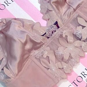 Victoria’s Secret Luxe Lingerie Unlined Floral Embroidered Long Line Bralette, Decidedly delicate in an easy to wear silhouette, with beautiful sheer floral pattern.