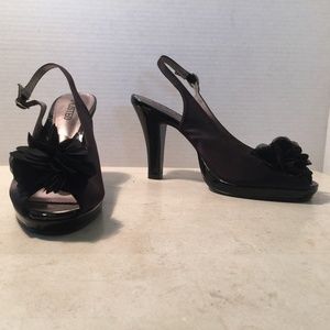 Unlisted Black Satin Peep Toe Sling