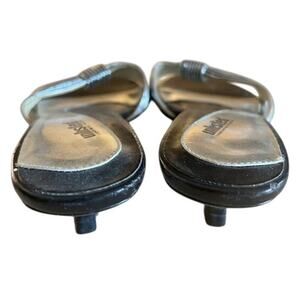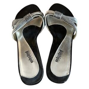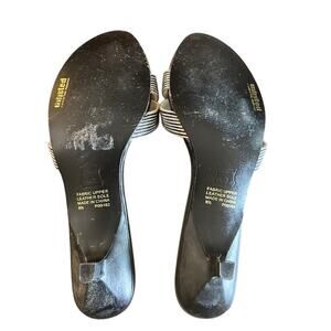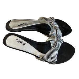 Unlisted Black & Silver Striped Knot Slip-On Kitten Heel Sandals – Size 8.5