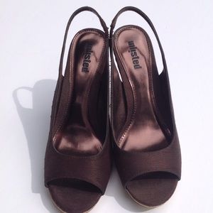 🍁 Unlisted Chocolate Brown Cork Peep Toe Heels🍂 These shoes are in Gorgeous Condition 💕 Worn Once! No wear to the heels... Ask for extra pictures if needed✨ Leather Soles and Brown Sateen Fabric With Buckle Closure❤️