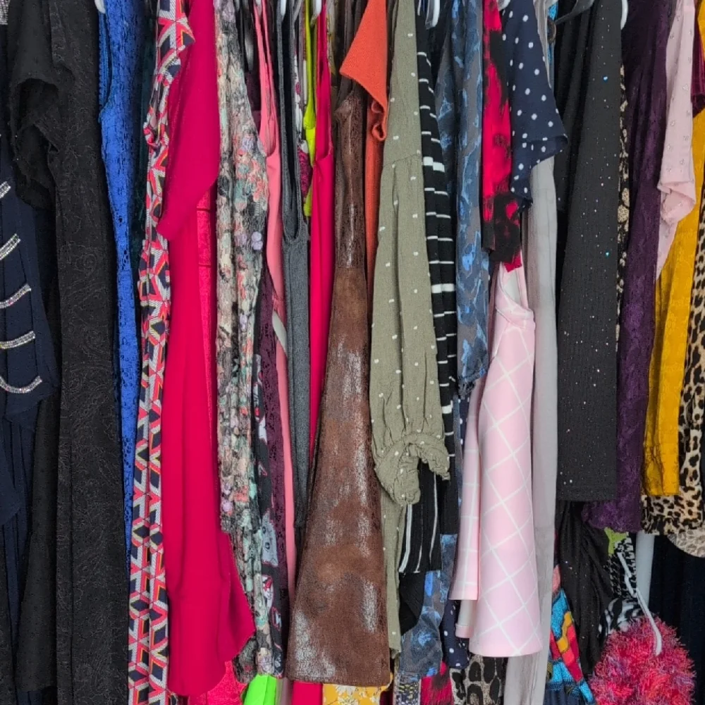 A vibrant assortment of dresses and tops in various colors and patterns. Perfect for adding a splash of color to your wardrobe.