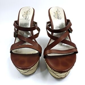 Unlisted Kenneth Cole Women's 10M Brown High Wedge Strappy Platform Sandals