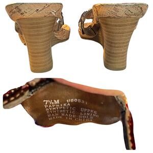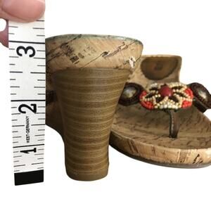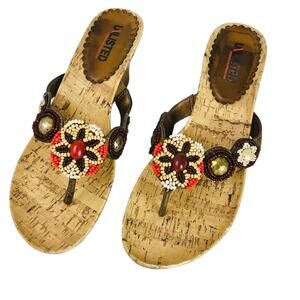 Unlisted Orange Brown Tan beaded Top with Bling cork sandals 7.5M 3 inch wedge