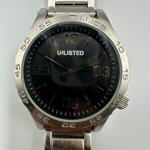 Unlisted Watch Men Silver Tone Black Dial 49MM Large Dial New Battery 8.75"