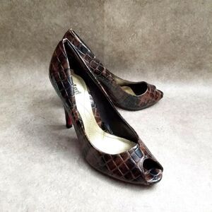 Unlisted Womens Stylish 76154 Size 6 Brown Peep Toe Croc Pattern 3.5" Heels Pump