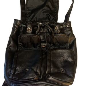 Unlisted By Kenneth Cole Black Pebbled Leather Flap Bucket Backpack Ladies Small
