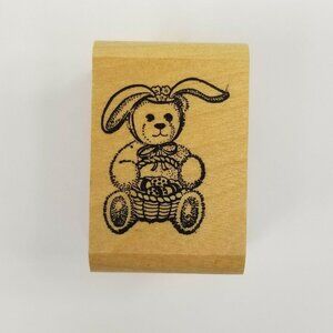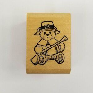 Unmarked Wood Rubber Stamps Thanksgiving Pilgrim Bear Easter Bunny Rabbit Set