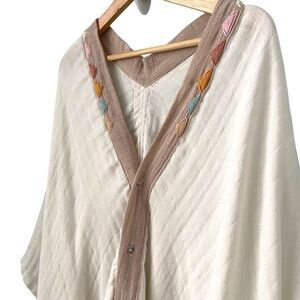 Tags: EmbroideredPoncho, WhitePoncho, TanPoncho, BohoStyle, Cottagecore, OneSizeFitsAll, SizeOS, LightweightLayers, FestivalStyle, PreLovedFashion, ClosetSale, StyleForSale, ShopTheLook, VintageInspired, NaturalTones, SoftAesthetic, NeutralOutfit, EarthyStyle, StatementPiece, LayeredLook, FashionFinds, ArtisanStyle, CozyChic, FreeSpiritStyle, EffortlessStyle, CasualBoho