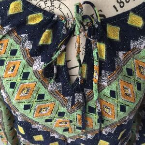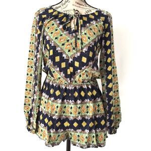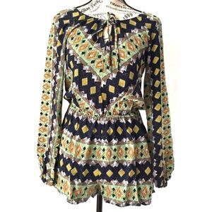 Unmarked Printed Romper in Green & Blue in Size (see measurements)
