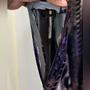 Uno Alla Volta Black Purple Mixed Print Velvet Burnout Duster/Kimono