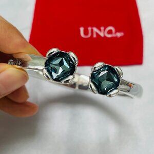 Uno de 50 AURA BLUE Blue Crystal Silver Plated Cuff Bracelet Size Medium